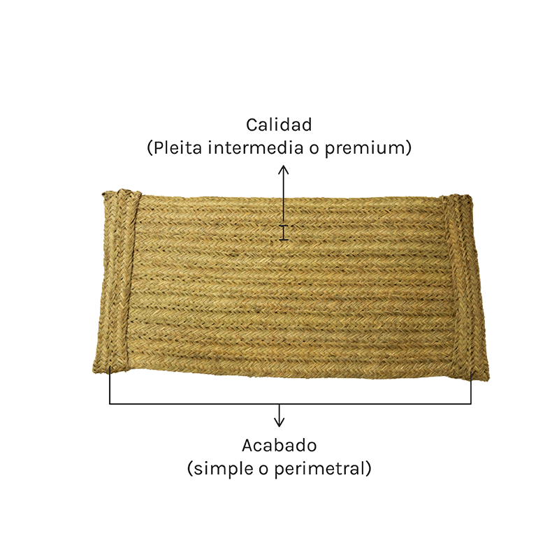 Se recomienda que los elementos de decoración fabricados en esparto se empleen en espacios interiores o exteriores cubiertos para alargar la vida útil de este material, ya que posee una gran resistencia al sol y a la abrasión, pero no al agua. Puedes elegir entre distintos tipos de pleitas y acabados.