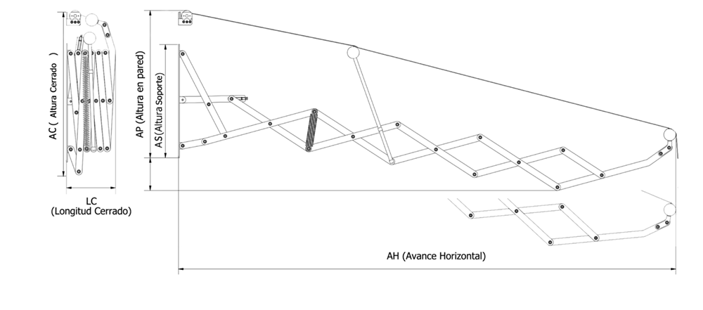 Esta función, que hasta ahora era desarrollada por varios toldos de brazos extensibles, pérgolas o velas, facilita la manipulación del toldo a la vez que mejora la estética de la fachada. El Tijera, un modelo de toldos para terrazas grandes, se encuentra disponibles en tres tamaños diferentes según su máxima proyección, mientras que el ancho de la línea no tiene límite. Por tanto, la salida de los brazos no depende del ancho de la línea.