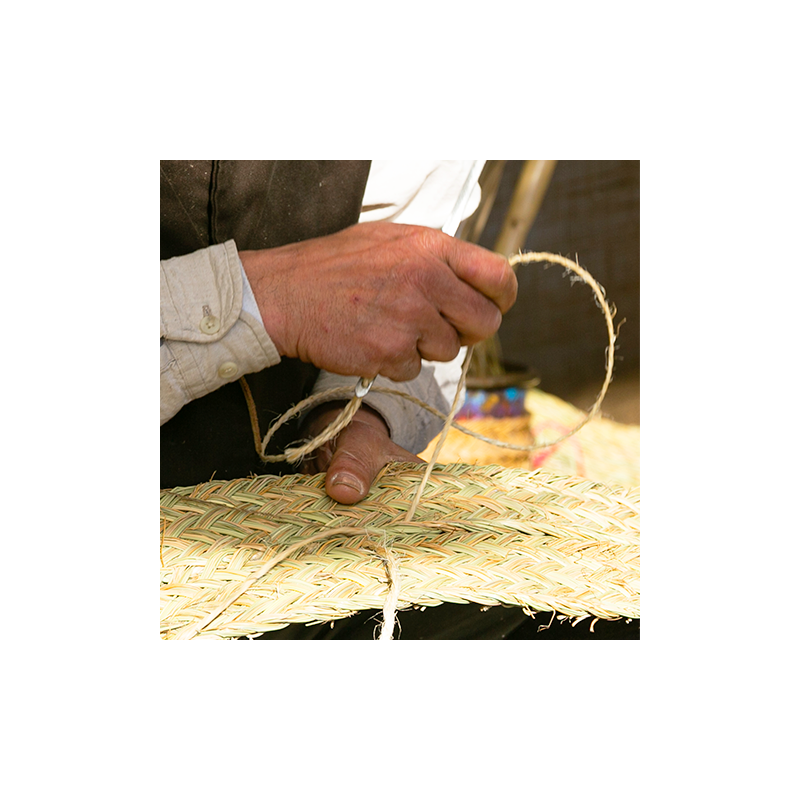 El esparto proviene de dos especies concretas (Stipa tenacissima y Lygeum spartum) de la familia de las gramíneas autóctonas del sur de España y del norte de África. A este material también se le conoce como yute en algunas zonas.