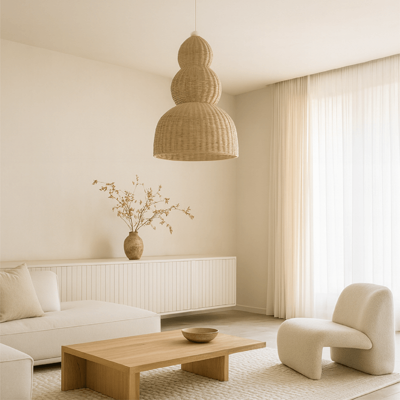 Las lámparas son una pieza fundamental en la decoración de interiores. Por este motivo, ofrecemos dos medidas de este diseño de lámpara de mimbre de tres cilindros.