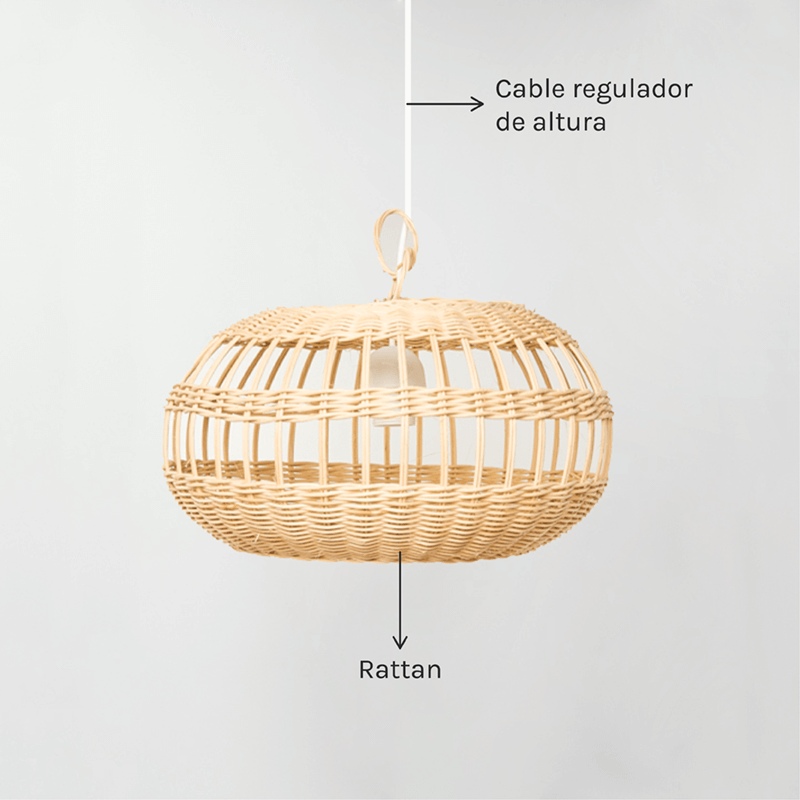 La durabilidad de esta lámpara de rattan está garantizada gracias a las propiedades naturales de este material: el ratán es resistente, flexible y sorprendentemente ligero, además de requerir un mantenimiento mínimo, por lo que es una opción excelente para un uso continuado.