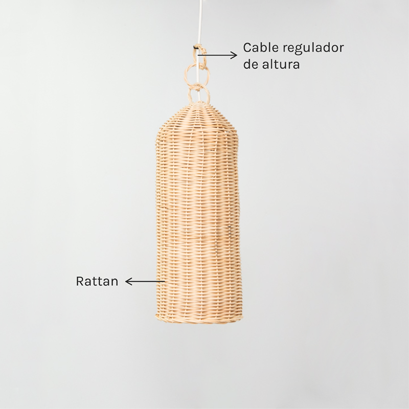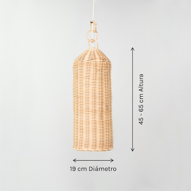 La durabilidad de esta lámpara de rattan forma tubo está garantizada gracias a las propiedades naturales de este material: el ratán es resistente, flexible y sorprendentemente ligero, además de requerir un mantenimiento mínimo, por lo que es una opción excelente para un uso continuado.