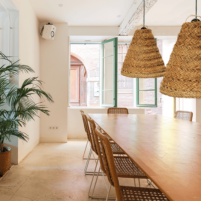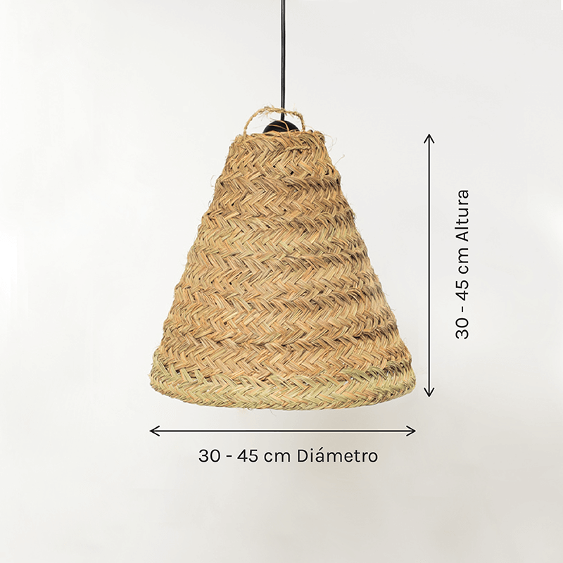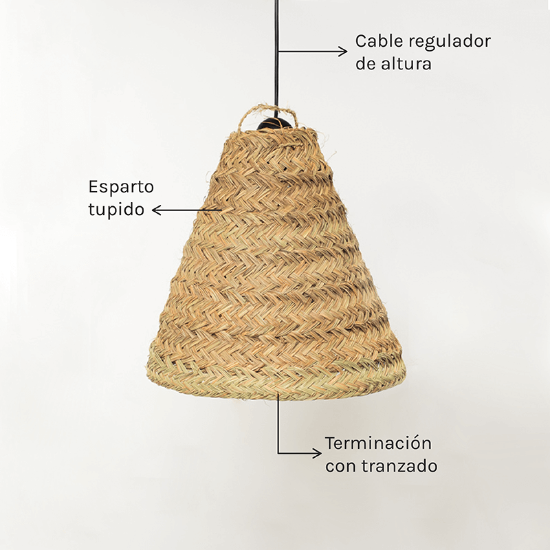 A lâmpada de esparto sem franjas é uma opção ideal para proporcionar uma boa iluminação e um toque rústico à divisão, uma vez que o esparto é um material natural e sustentável que muda completamente a forma de percecionar um ambiente. O design clássico sem franjas torna-o num elemento discreto, mas elegante.