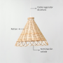 A durabilidade desta lâmpada de rattan chapéu é garantida graças às propriedades naturais deste material: o rattan é resistente, flexível e surpreendentemente leve, além de requerer uma manutenção mínima, tornando-o uma excelente opção para uso contínuo.