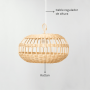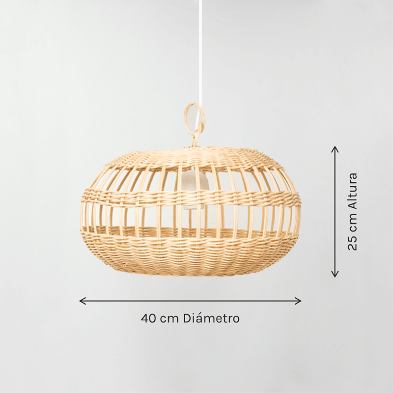 A durabilidade desta lâmpada de rattan é garantida graças às propriedades naturais deste material: o rattan é resistente, flexível e surpreendentemente leve, além de requerer uma manutenção mínima, tornando-o uma excelente opção para uso contínuo.