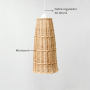A longa vida útil desta prática lâmpada de vime com forma de capuz com buracos é garantida devido às propriedades inatas do vime, pois é um material tão rígido quanto leve, e à fácil manutenção que requer.
