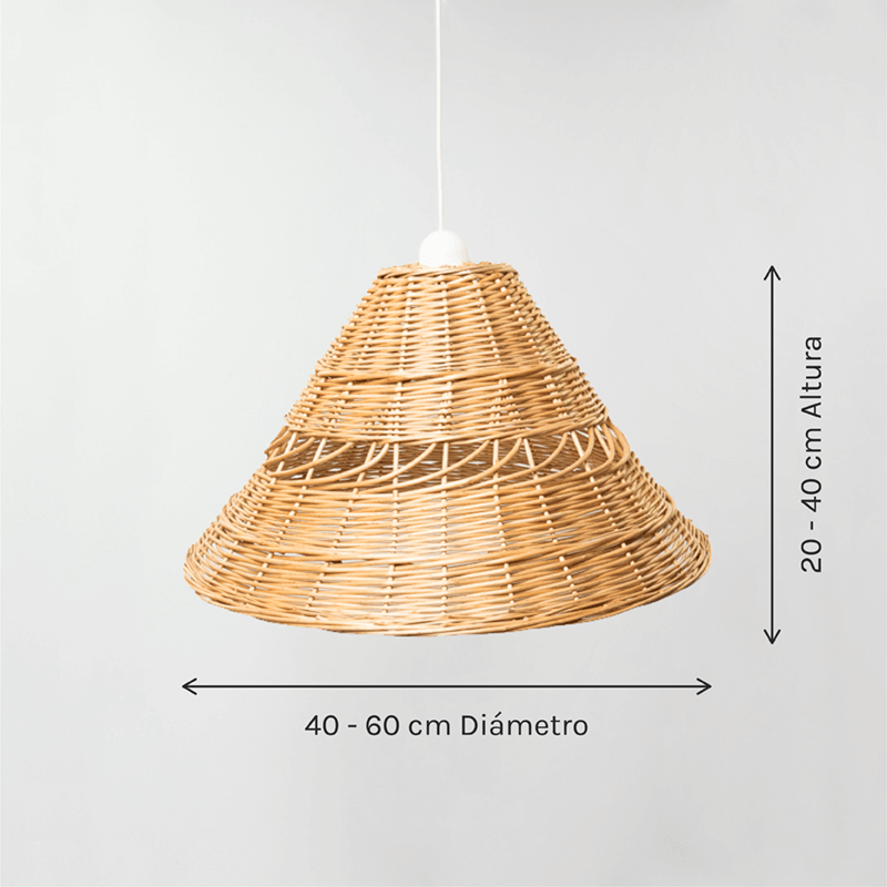 Os candeeiros são uma peça fundamental na decoração de interiores. Por este motivo, oferecemos dois tamanhos deste desenho de candeeiro de vime em forma de chapéu com buracos.