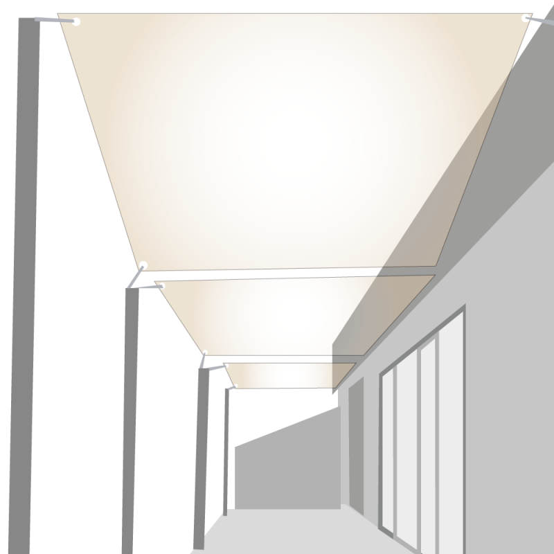 O material que utilizamos foi desenhado para evitar que os raios UV penetrem na pele das pessoas que se abrigam debaixo do toldo. O tecido tem um nível de proteção contra os raios solares de 60 nas cores claras e de 80 nas cores escuras. Além disso, de acordo com o tipo de tecido escolhido, oferece uma proteção perfeita contra a chuva.