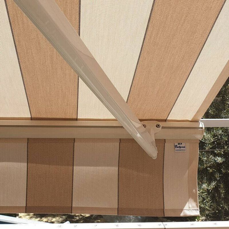 Na Beljemi, como fabricantes, desenhamos o tecido do toldo especialmente para cada necessidade. Este tecido para toldo é um material pensado para evitar que os raios UV atinjam a pele de quem se abriga debaixo do toldo e, dependendo do tipo de tecido escolhido, protegerá perfeitamente da chuva.