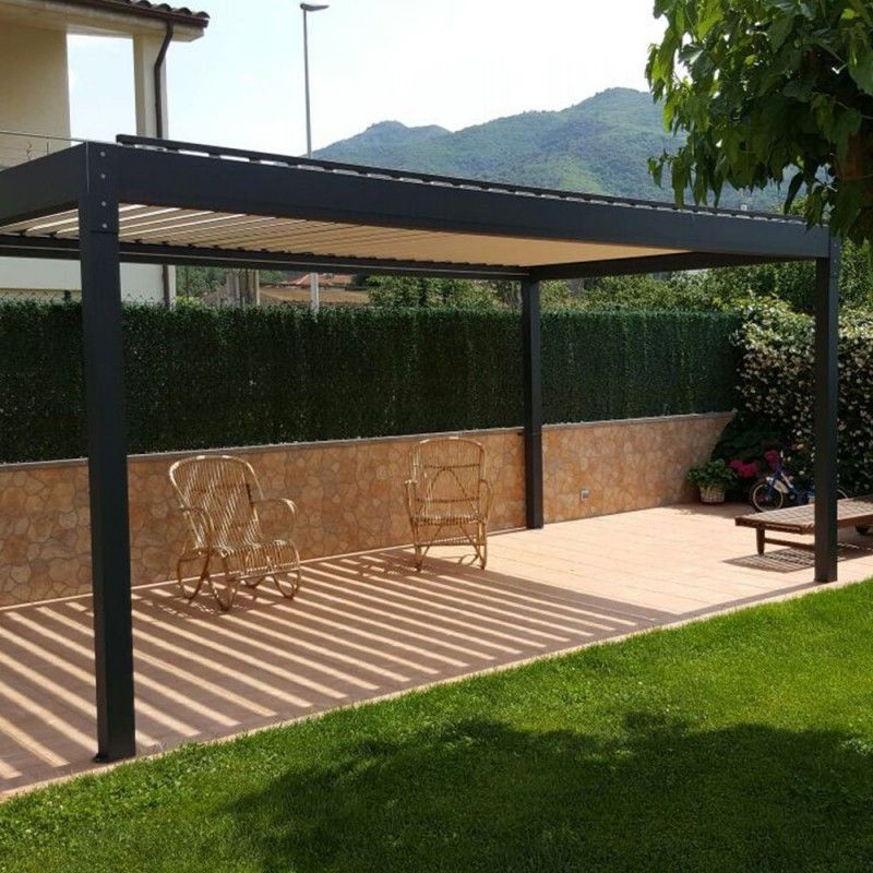 Ajustar a inclinação das ripas ajuda a evitar o efeito estufa e ventilar o espaço coberto, bem como em caso de chuva ou muito sol, fechá-las completamente.