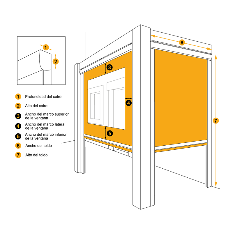 Estes toldos verticais feitos sob medida são especialmente adequados para fechar espaços. Deve medir a largura total do espaço a cobrir, quer se trate de um modelo com ou sem cassete, uma vez que a largura se refere a todo o conjunto (estrutura e lona); a altura total a cobrir e se as ferragens encaixam. Para mais pormenores, pode ler o nosso artigo aqui. Para ver as medidas dos acessórios, consulte a ficha técnica do produto.