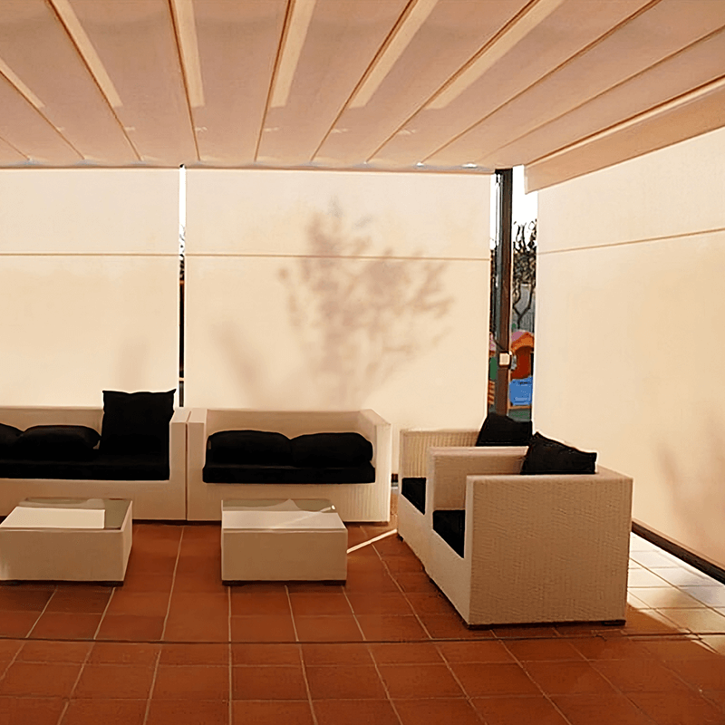 Este toldo corta-vento vertical foi projetado para a exposição no exterior. É um modelo muito resistente que protege do vento e da chuva, ajudando a isolar certas divisões da sua casa ou empresa. Graças ao seu isolamento térmico, torna os terraços, os alpendres ou as pérgulas utilizáveis durante muito mais tempo.