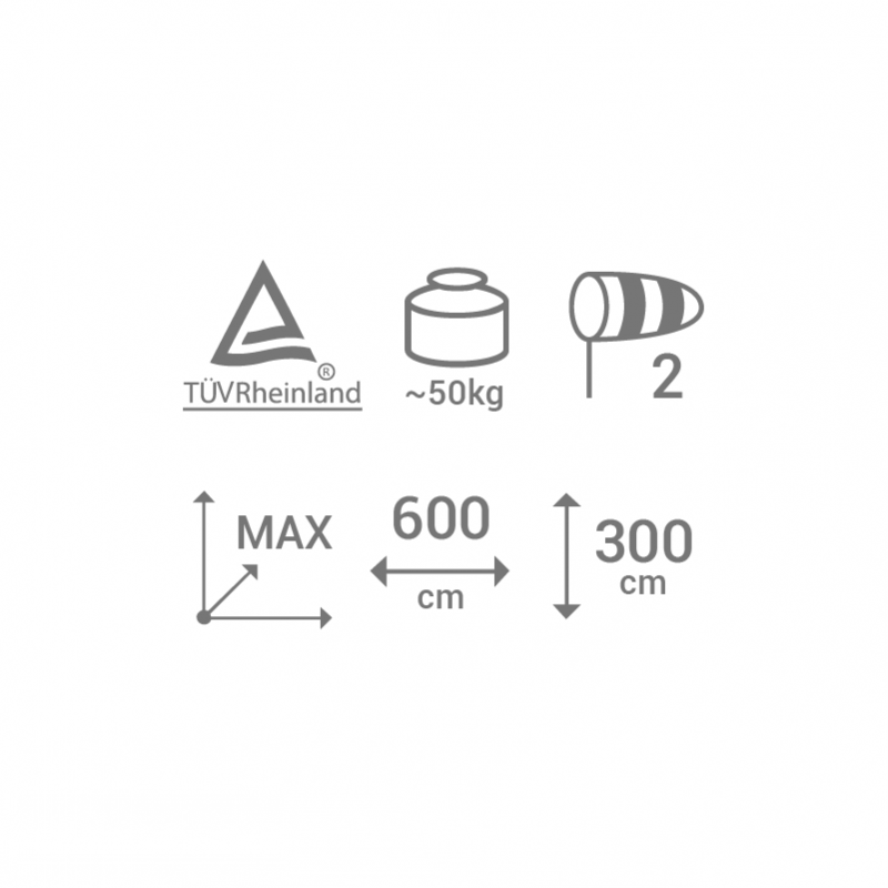 Este produto contém a marcação CE, uma certificação europeia que garante a sua segurança e que foi fabricado integralmente em Espanha e na União Europeia. É enviado PRÉ-MONTADO e com todos os acessórios necessários para instalação; Em poucos minutos você terá seu toldo disponível e poderá desfrutá-lo por anos.