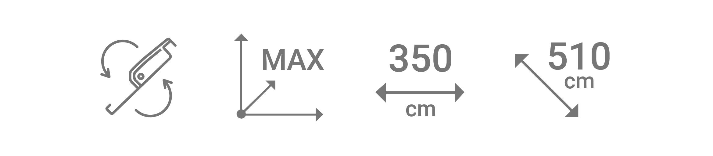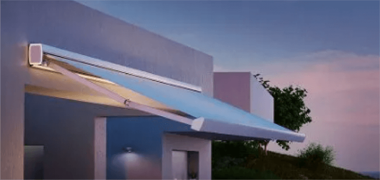 Um toldo de braço extensível com um desenho elegante e fixações ocultas. Apesar do seu tamanho compacto, oferece até 4,10 m de saída e a possibilidade de iluminação.