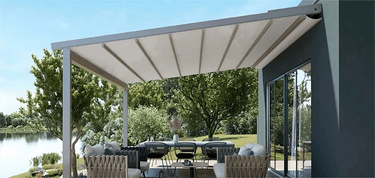 Um toldo de fixação oculta que se caracteriza pela sua cassete vertical concebida para ocupar menos espaço, conseguindo assim um desenho sofisticado.